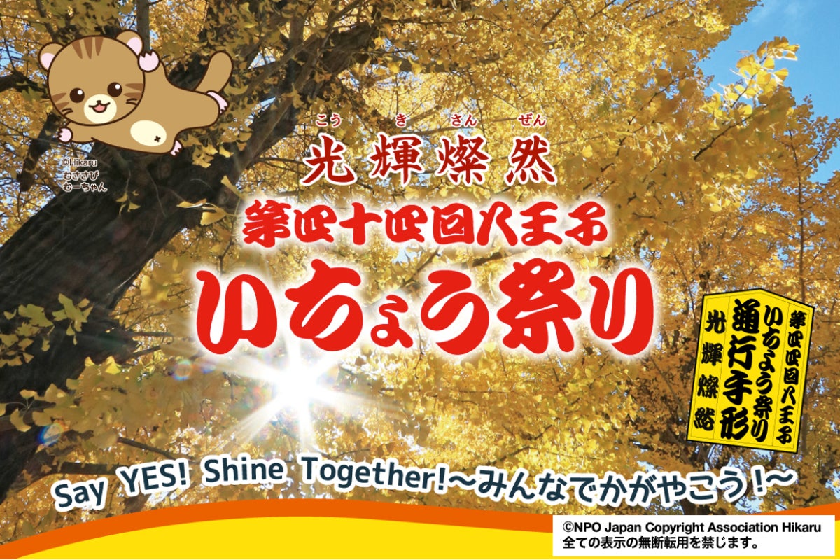 そして、スローガンは、<Say YES!Shine Together!~みんなでかがやこう!~>とし、光に照らされ美しく輝くいちょう並木の下を、みんなで歩いて楽しんでもらいたい、また、「八王子いちょう祭り」を通して参加者全員、市民の皆さまお一人お一人に輝いてもらいたいという思いを込めました。