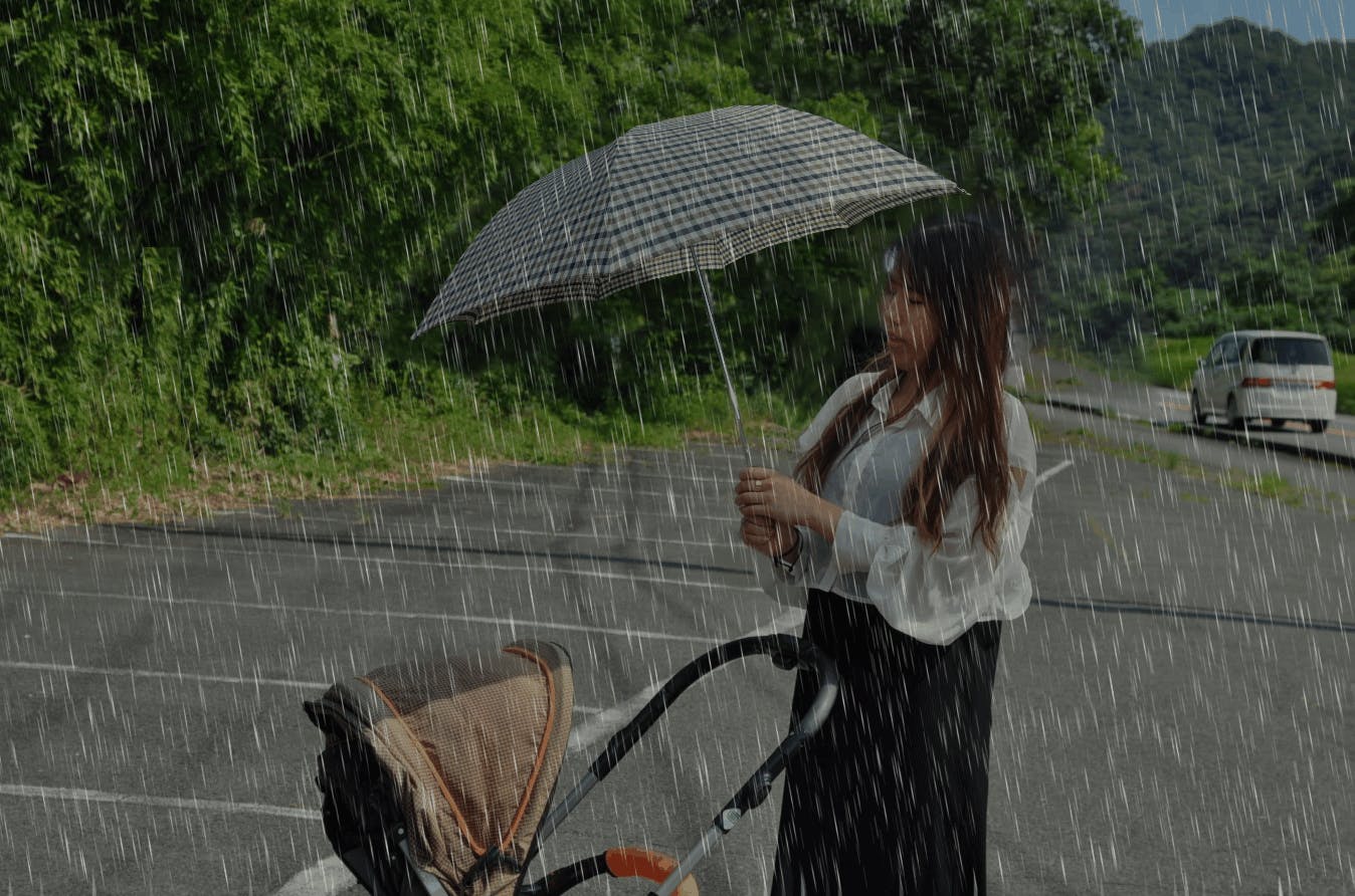 ベビーカーの子供か自分、どちらかが濡れてしまう。