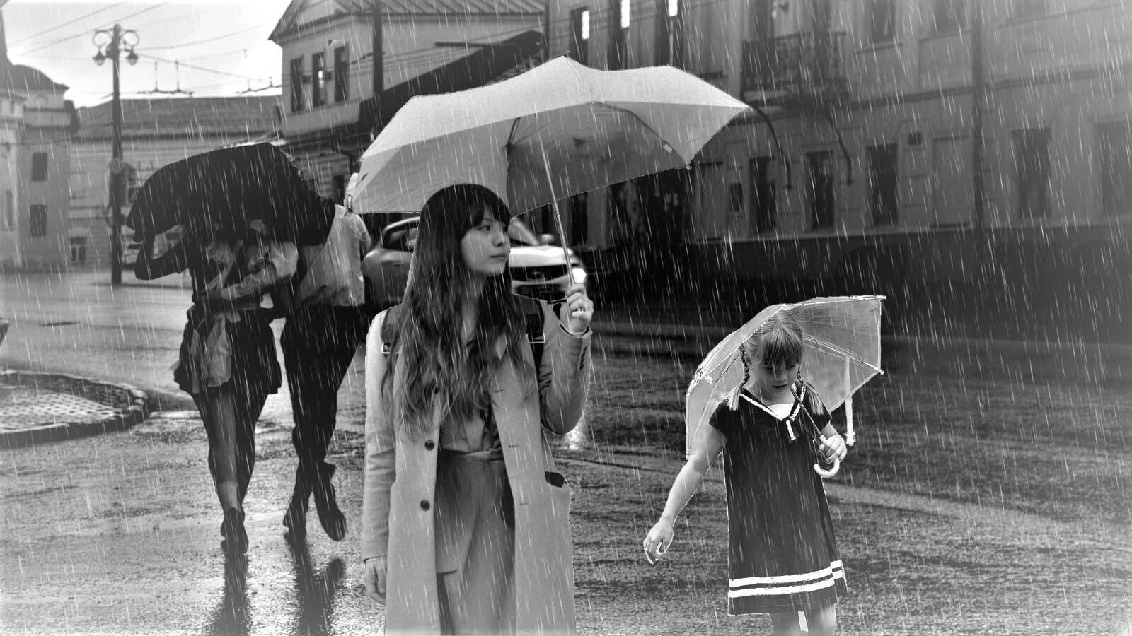 安全のため子供と手を繋いで歩きたいが、どちらも傘をさしているとちょっと無理
