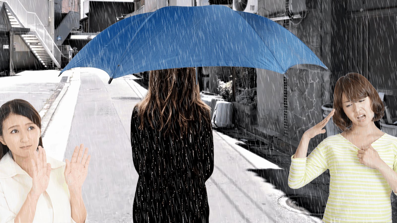 でも傘をさしていたら距離が離れておしゃべり出来ない。