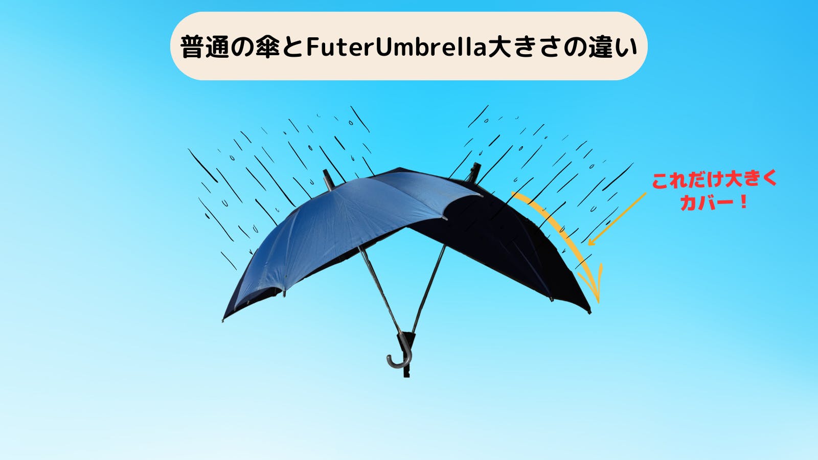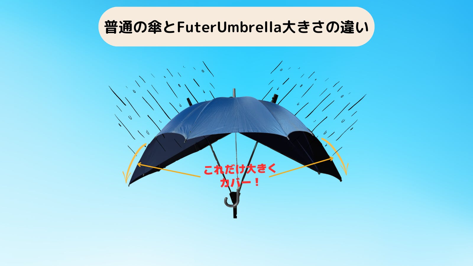 「 Future Umbrella」はこの構造で太陽光線も広範囲に軽減します。