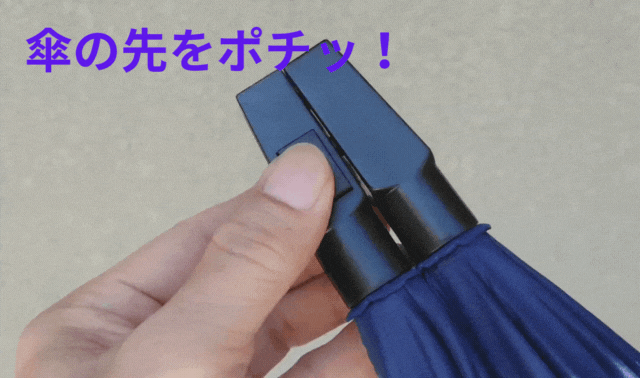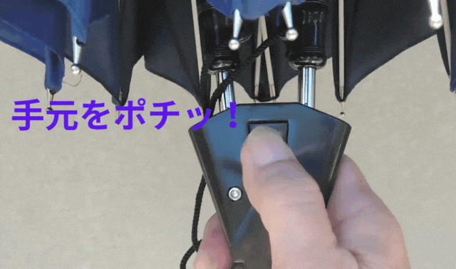 傘の開き方はツータッチ、傘先をポチッ 持ち手をポチッ 2秒で開きます。