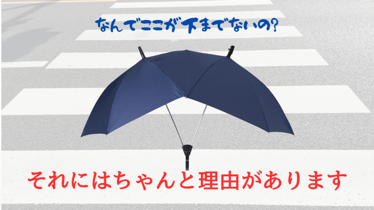 それなら、細長い傘でいいんじゃないっ?と思うかもしれませんが、傘が大きくなると重くなるのと形だけ変えると耐久性に問題が生じます。