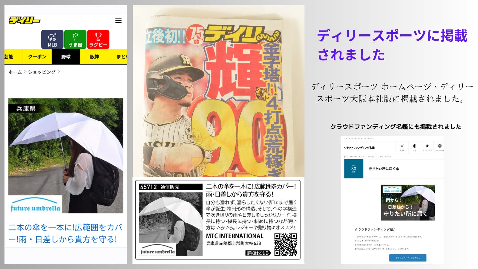 MTC Internationalは、「Future Umbrella」の日本における独占販売権を有する正規代理店として プロジェクトを実施しております。詳細に関しては、ページ下部のリスク&チャレンジをご確認ください。