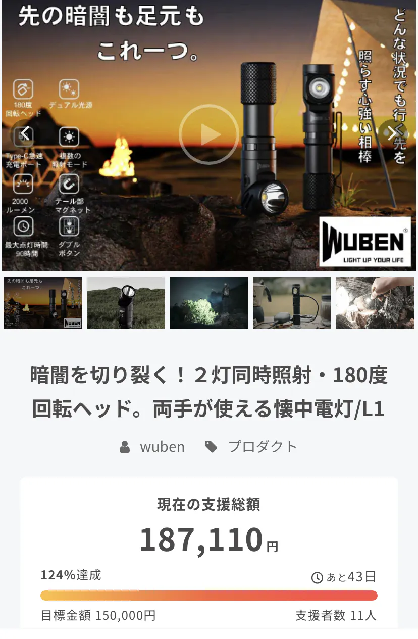 この度はWUBEN【L1】をご支援いただき誠にありがとうございます。