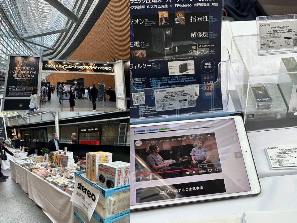 京セラ(株)が開発中(製品化前)のセラミックスとフィルムを組み合わせたアドオン型スーパーツイーターをオーディオ評論家 山之内正先生と月刊stereo 吉野編集長との対談を交えたstereo試聴室での試聴会への参加型イベント。当日の模様は月刊stereo1月号に掲載予定