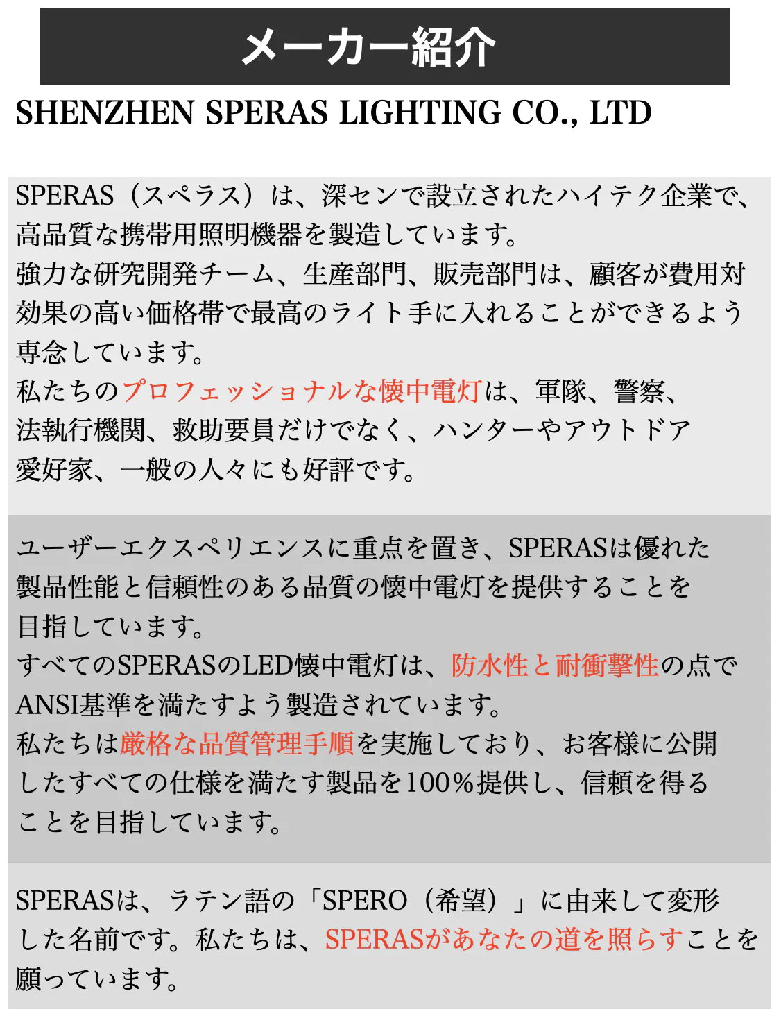■メーカー情報 - ・メーカー名:Shenzhen Speras Lighting Co.,Ltd
