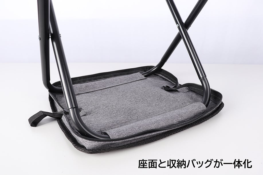 一般的な折りたたみ椅子は座面と収納袋が分離型ですが、「Yacon」は座面と収納バッグが一体化したため、どこかに忘れたり紛失したりする心配がありません。