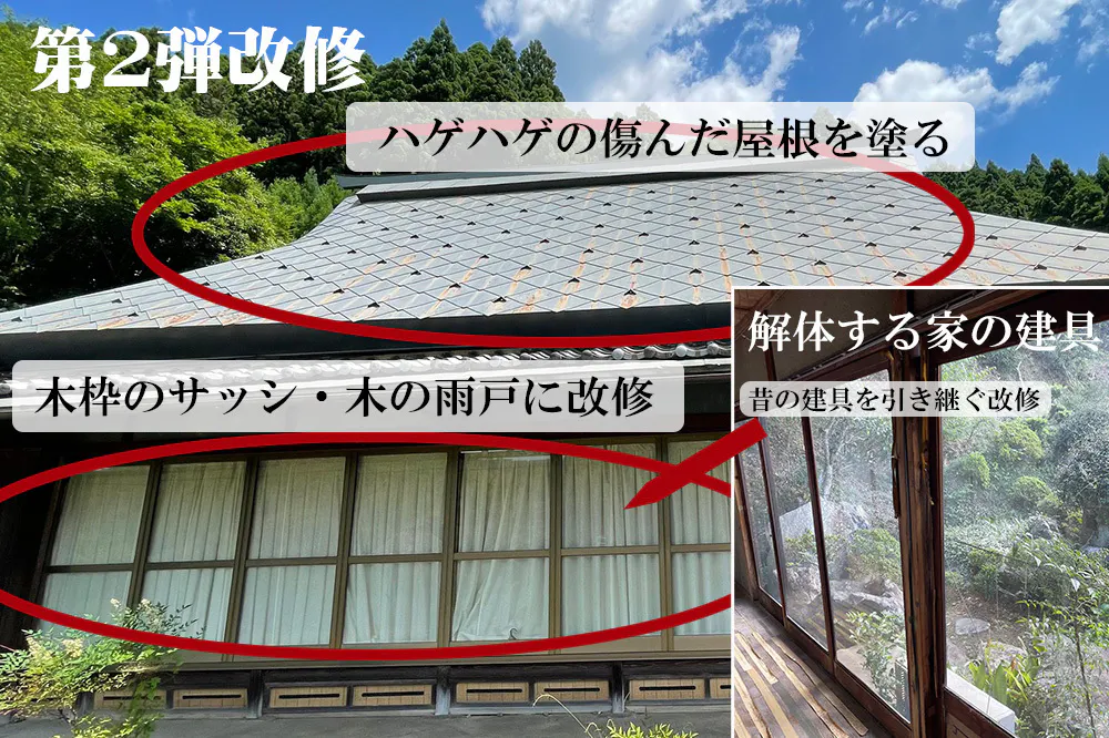 いまのままでも家として問題はありません。でも、この家の一番良い所は、日当たりの良い縁側です。その縁側にはアルミサッシの戸がついています。何年か前に住んでらっしゃった時に、台風で戸が倒れたそうです。縁側を全開にしたいのに、戸が重いため開けにくく窓枠も傷んできています。