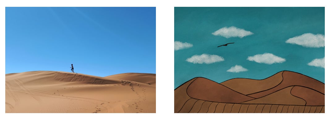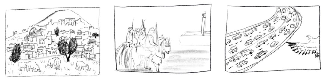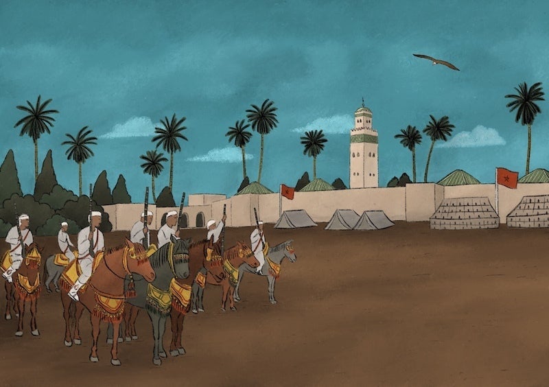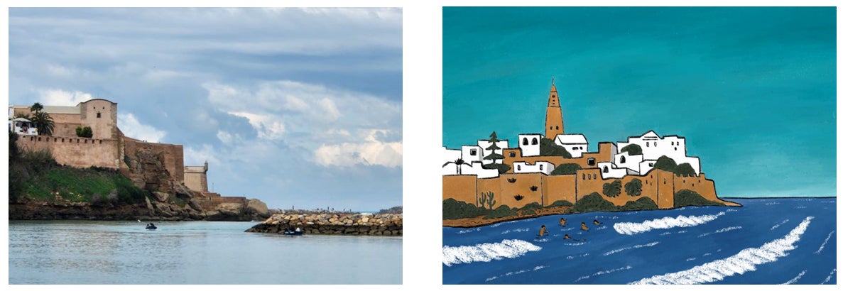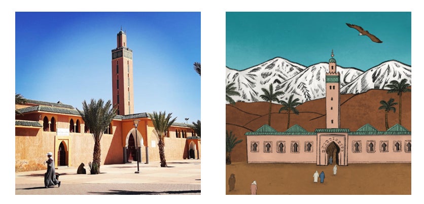 以降、モロッコ各地を訪れる機会に恵まれ、その過程で見た景色を交えた、ちょっぴり切ない物語ができました。2020年春から夏にかけて、コロナ禍を受けてモロッコの国境が完全閉鎖となり、厳しい外出禁止令のもと軍隊が出動して取り締まるようなロックダウンが3ヶ月間続きました。その間、ラバトのアパートで将来の不安にかられつつ軟禁生活を送る中で文章を仕上げ、アーティストのLolliとオンラインで挿絵の相談を重ね、徐々に絵本が形になってゆきました。