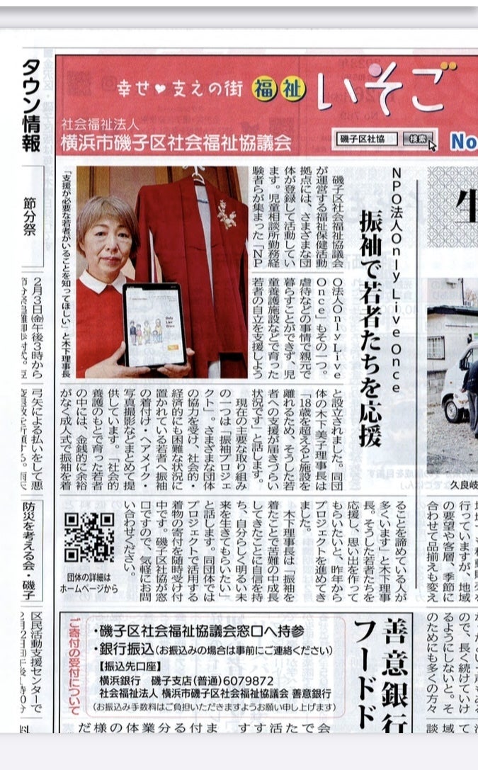 ボランティア活動として、【振袖プロジェクト】を法人の発足当時から行っています。