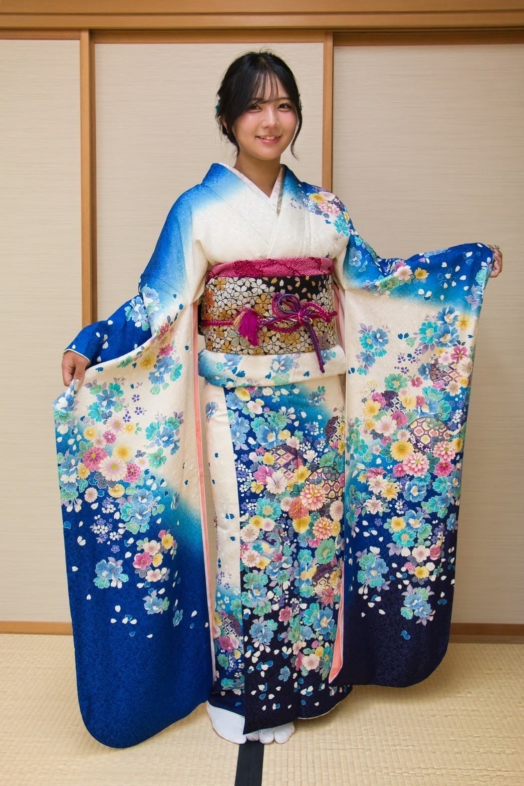 諦めていた彼女・彼らに寄贈してもらった着物の着付け、ヘアメイク、撮影した写真一式をセットで5,000円で行っています。