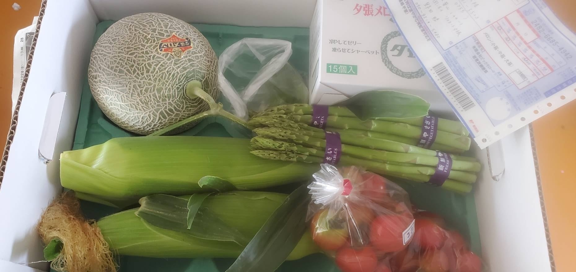 「夕張メロン」「北海道産特産品と夕張メロンのセット」・とうもろこし・アスパラ・ミニトマト・夕張メロンゼリー・夕張メロン など旬のものを詰め、クール便で発送しました〜!到着までお待ちください!直接やりとりできるLINE公式アカウントはこちらからhttps://lin.ee/U9LUtBS