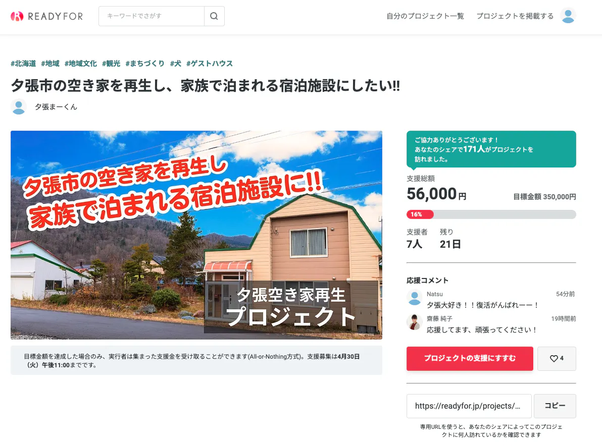 夕張市の空き家を再生し、家族で泊まれる宿泊施設にしたい!!