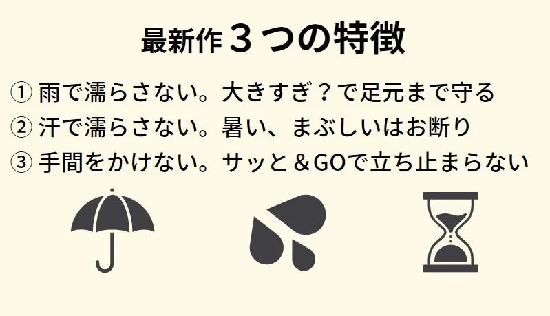 軽くて持ち運びに便利!でもいざという時には、小さくて濡れる…