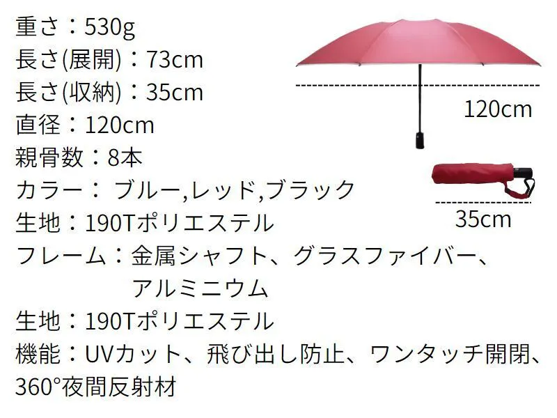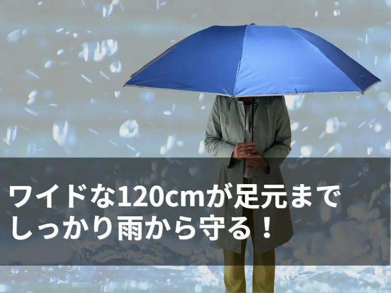 そこで、傘の直径を102センチから120センチに。18センチも大きくなったワイドサイズで荷物が多い日でも足元までしっかり雨から守ります。