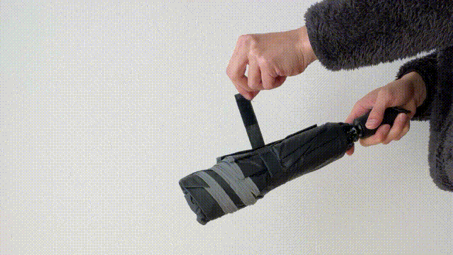 そこで、バンドを延長して幅広のマジックファスナーを採用。フワッと広がってしまった傘も巻き取りやすくなりました。