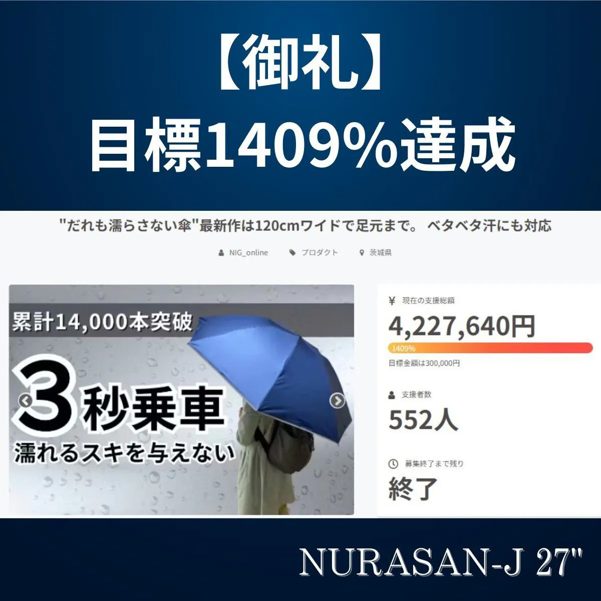 ワイドで雨にも日差しにも強い逆折りたたみ傘の第2弾先行販売プロジェクト