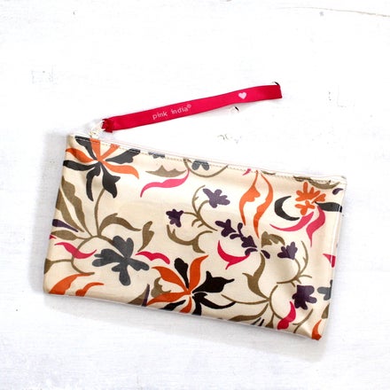 ・pink indiaの両面ビニールポーチ(サイズ12x22cm)と【Camp fire限定♫】pink india オリジナルfuroshiki(45x45cm)1枚のセットをお届けします。