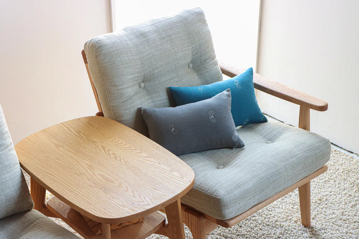 三島家具オリジナルのミナペルホネンの特別な京座布団とミニクッション。