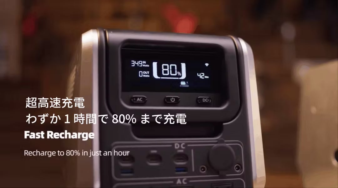 Neutron 1200はスマートな双方向インバータ技術を採用しています。また、電池の寿命を保護するために、充電電力をリアルタイムで調整します。AC充電1時間で電池電力を0%から80%まで高速充電し、80%以降は緩やかに充電し、約1.5時間でフル充電可能です。