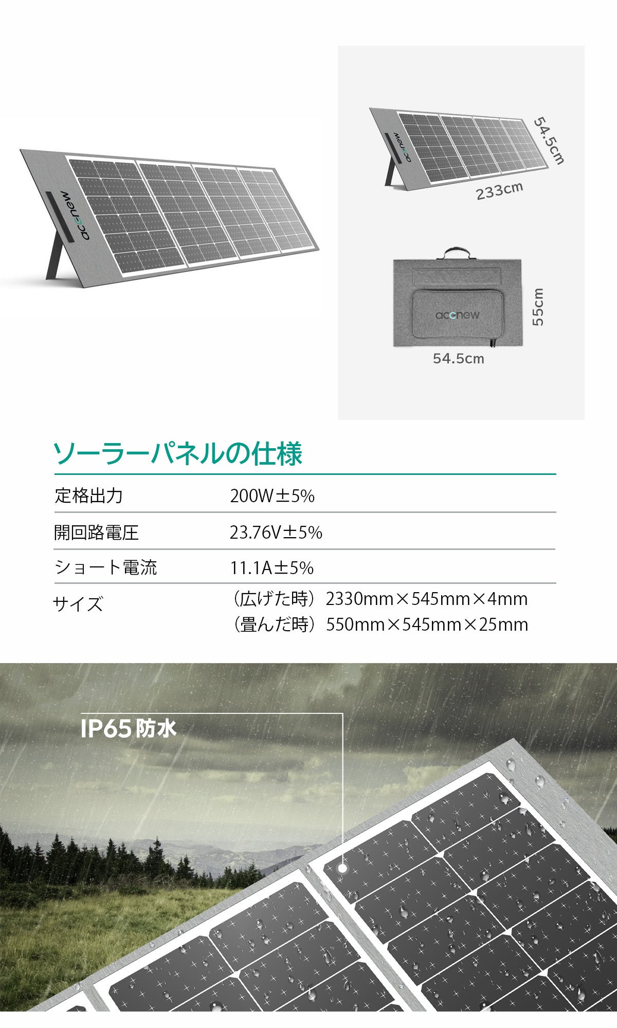※この製品のUSB-Cポート2およびUSB-Cポート3は双方向入力をサポートしており、Acenewソーラーパネルまたは同様の機能を持つソーラーパネルを使用してUSB-Cポート2およびUSB-Cポート3に接続することで、最大200Wのソーラーパネル充電が可能です。