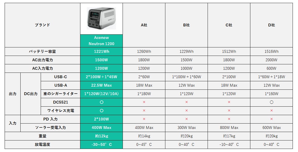Neutron 1200は、耐寒耐熱性において、厳しい環境条件下でも優れたパフォーマンスを発揮します。極端な温度変化や厳しい気象条件においても、安定的に電力を供給し、あなたのニーズに応えます。