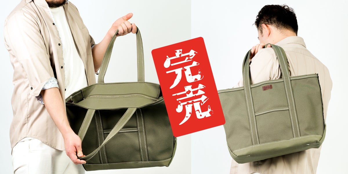本日、『【ファスナー付き】2号帆布トートバッグ Lサイズ カーキ』が完売いたしました!これまでご支援を頂いた皆様、誠にありがとうございます!これから支援の検討をして頂ける方は、他にも在庫がありますので、そちらから検討して頂けると幸いです。引き続き応援のほどよろしくお願いいたします。