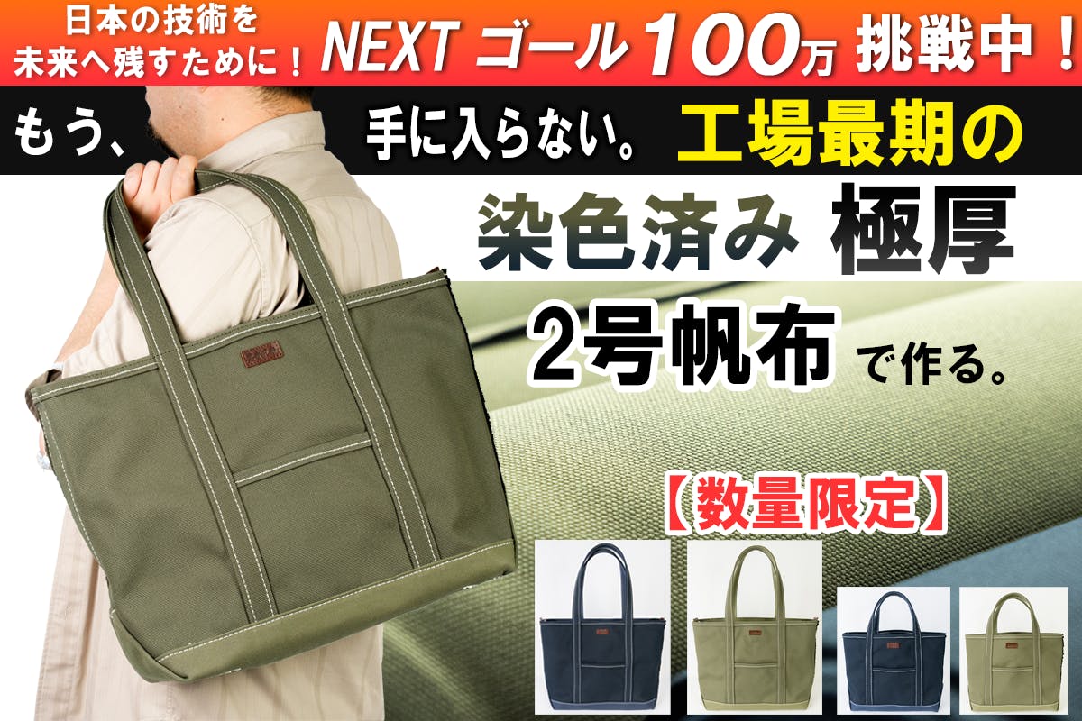 集めた資金はリターン品の生産、広告・宣伝活動、国産帆布を使った新製品開発などに使わせていただきます。