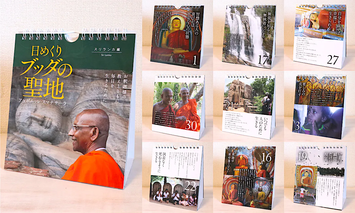 31日分のスリランカの写真に、アルボムッレ・スマナサーラ長老の著作から31編の珠玉の言葉を選んで掲載しました。