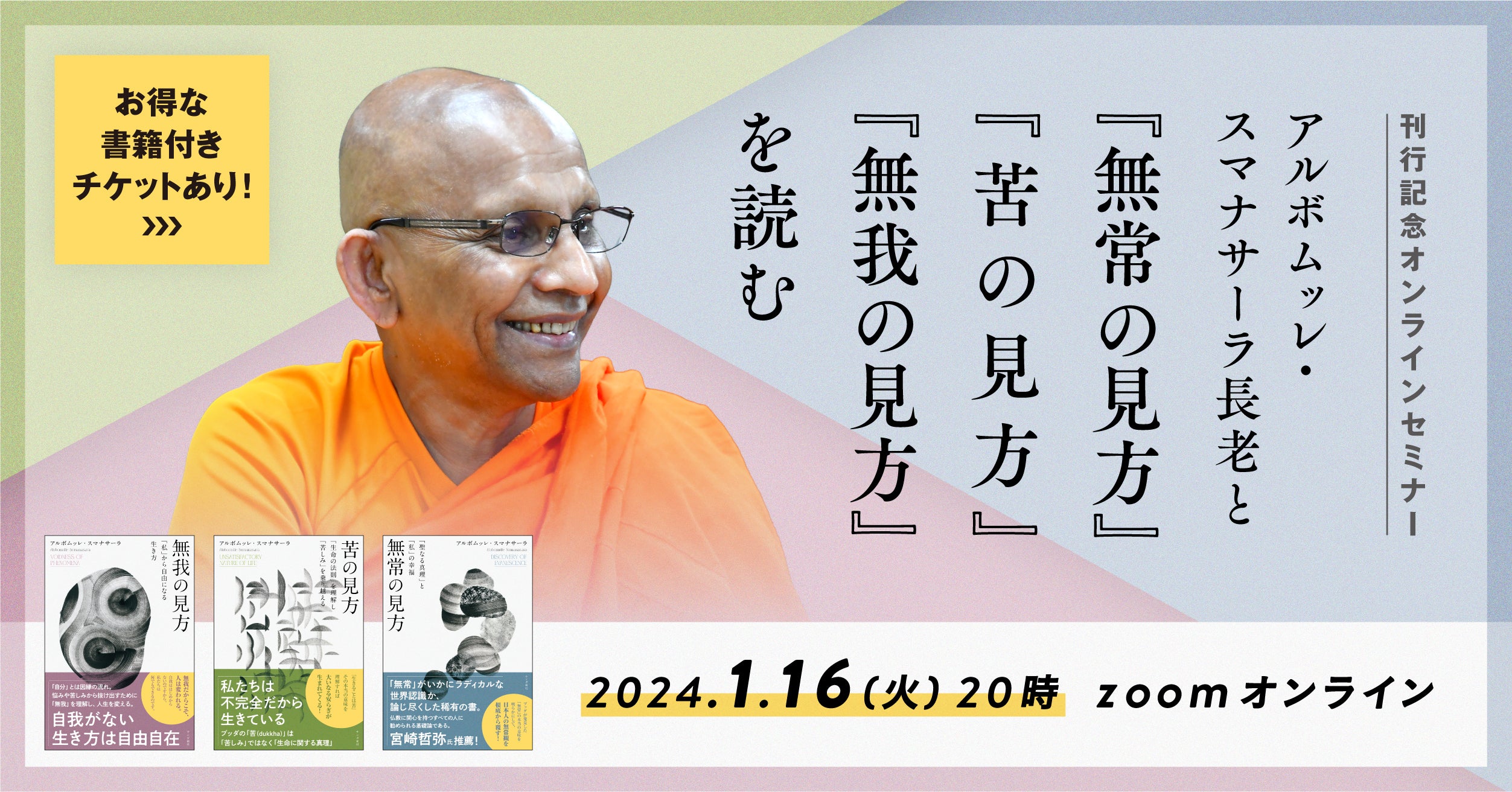 アルボムッレ・スマナサーラ長老と『無常の見方』『苦の見方』『無我の見方』を読む(刊行記念オンラインセミナー)