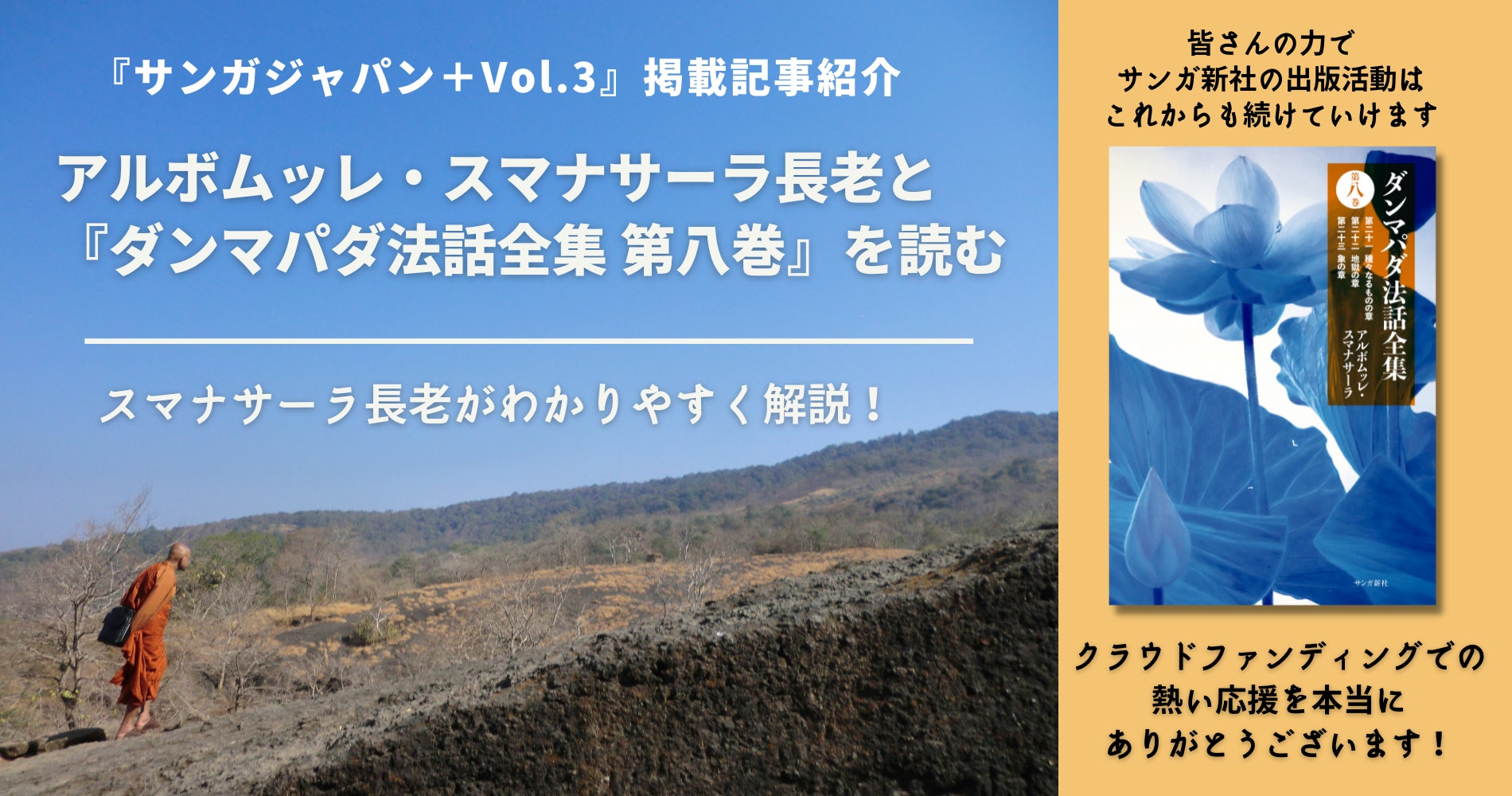 そのような活動の中で生まれた、「アルボムッレ・スマナサーラ長老と『ダンマパダ法話全集 第八巻』を読む」の記事を、ぜひ『サンガジャパン+ Vol.3』でじっくりとお読みになってください。