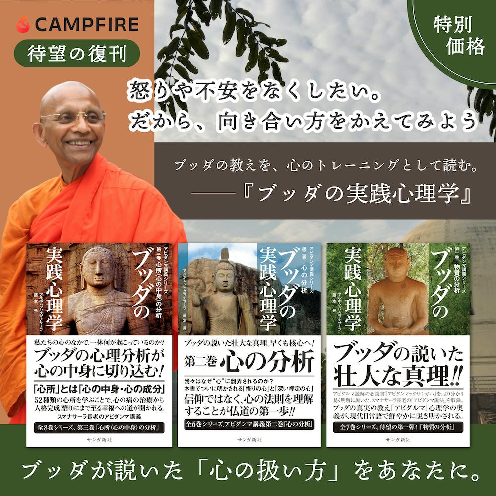 そして、このクラウドファンディングをきっかけに、一人でも多くの方が『ブッダの実践心理学』と出会ってくださることを強く願っています。
