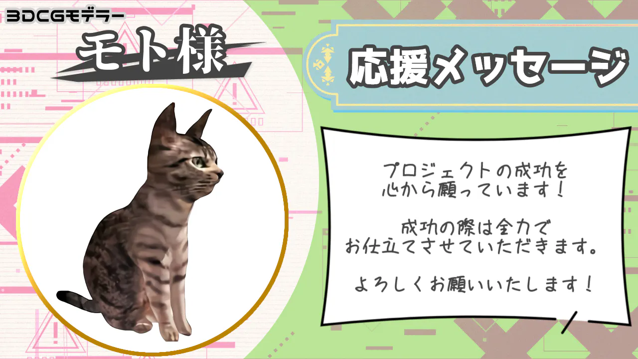 今回3Dモデル制作をご依頼させていただいたのはモト様です!