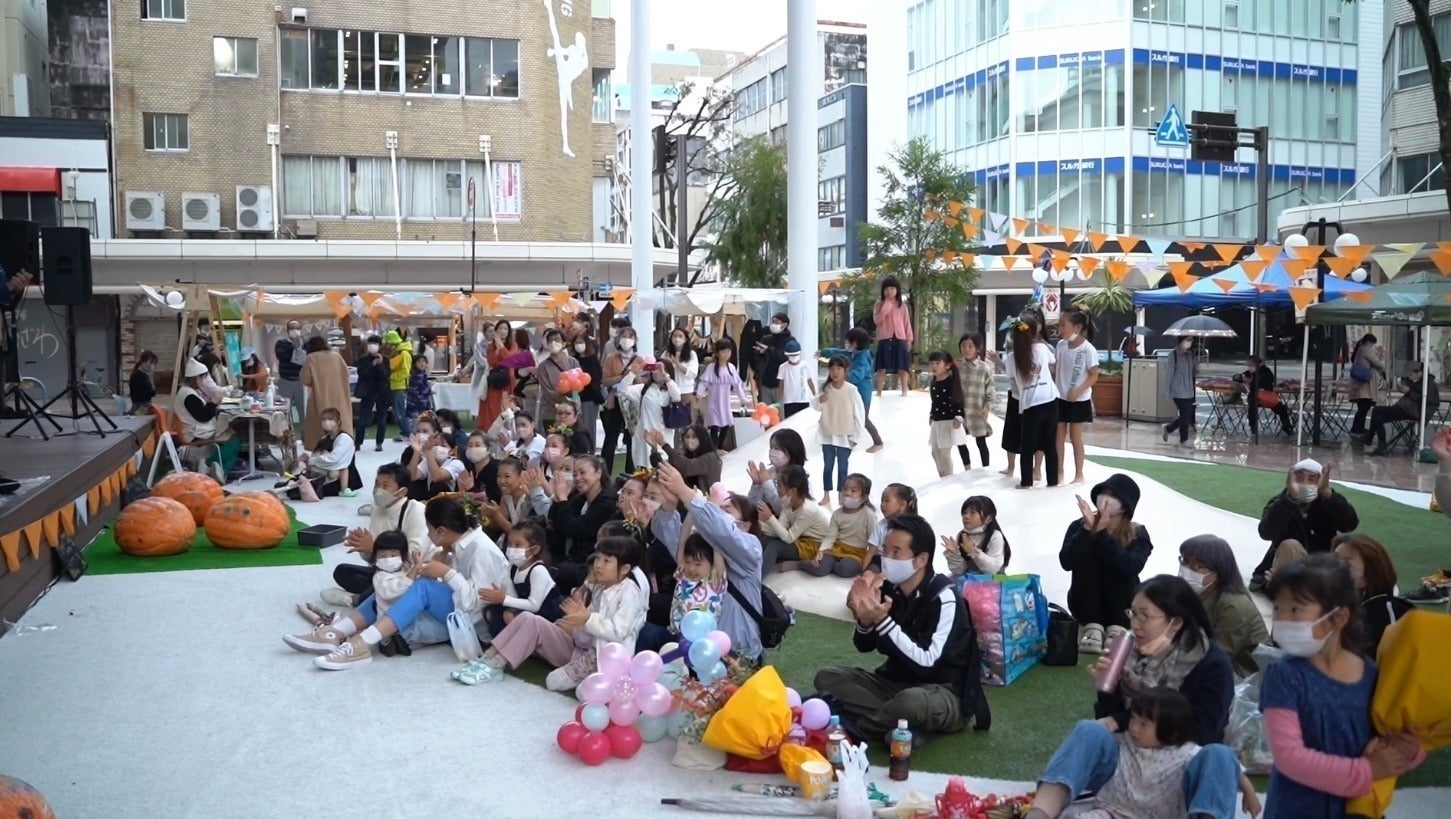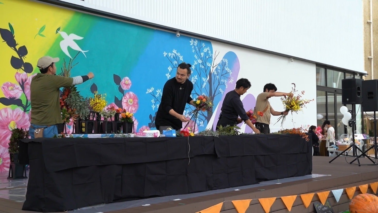 お祭りエリアでは、金魚すくいならぬ「巨大お花すくいプール」や「巨大カボチャへ落書き」、花屋が中央ステージで花束を即興で作り来場者へプレゼントする「フラワーパフォーマンス」、そして、来場記念に「花の髪飾り」を子どもたちにプレゼント。その場でつけて、会場内のブースを楽しむことができます。