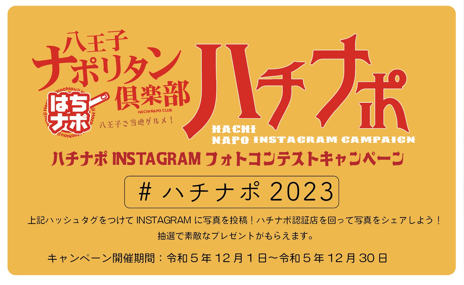今月30日まではちナポ加盟店にて、インスタ(@hachiojinaporitanclub)に、