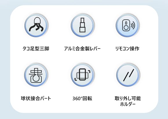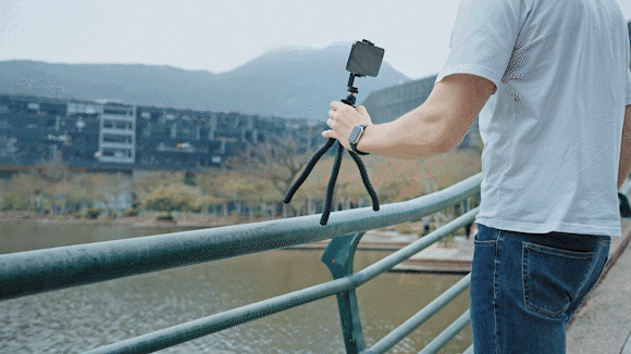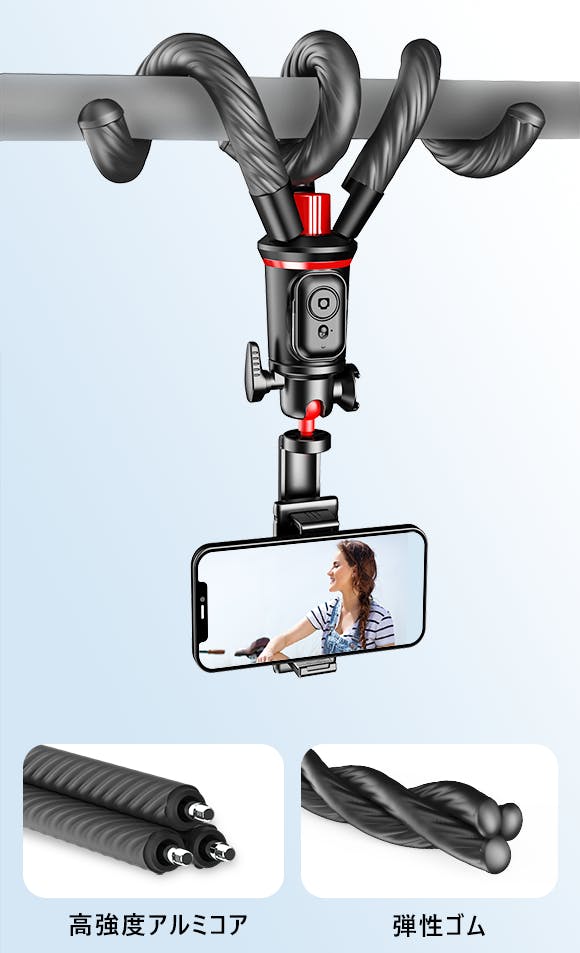 1.タコ足型の三脚を採用、従来の三脚より柔軟性が高く、いつどこでも固定可能
