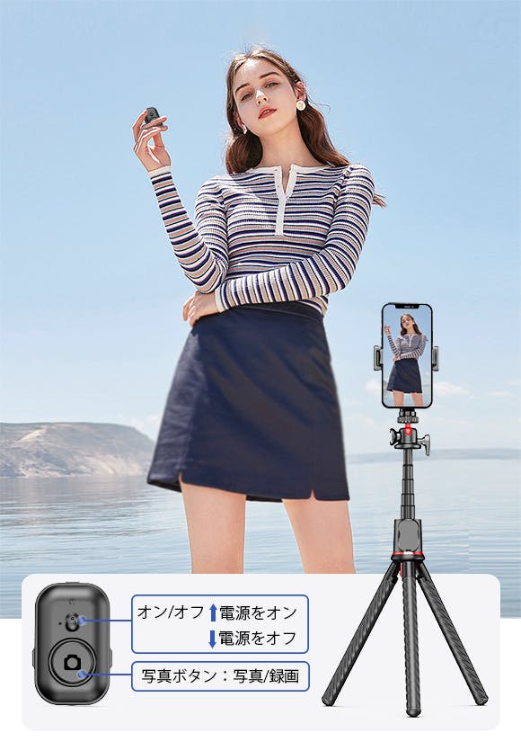 今回の「TOKQI-C03」は、さまざまな地形や場面でカメラやスマホを安定的にサポートするとともに、Bluetoothリモコンや、取り外し可能なスマホホルダーなど実用的な機能も追加し、初心者でも手軽に撮影できます。