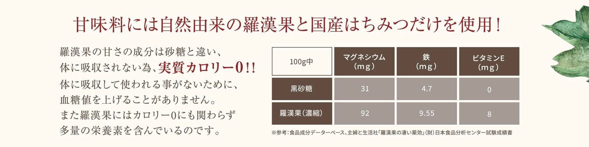 ※ 成分表示のエネルギー数字には加算されますが、羅漢果のカロリーは吸収されません。