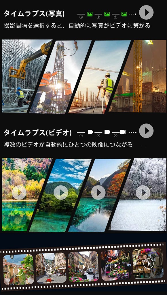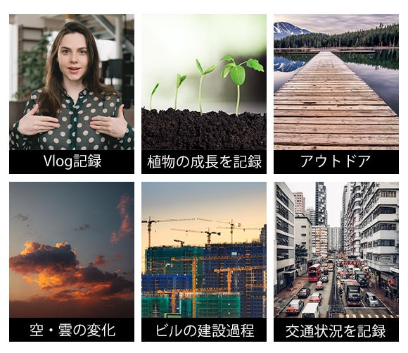カメラを固定して撮影するだけで、一定間隔で撮影した静止画像や動画をつなぎ合わせ、まるで動画のように魅せるタイムラプス撮影。時間が凝縮されていたように表現され、「変化」がひと目でわかります。