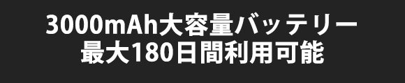 ・3000mAhリチウム内蔵式電池、フル充電で最長6ヶ月(180日)使用