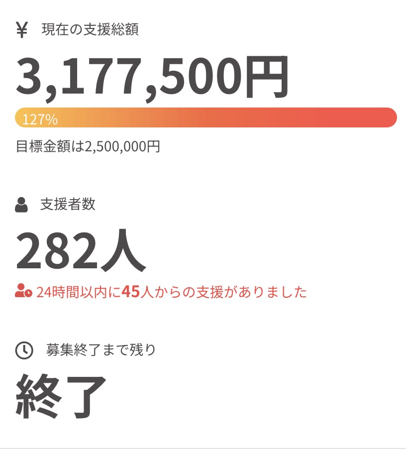 プロジェクトページにいっては、応援コメントを見てまた感動。