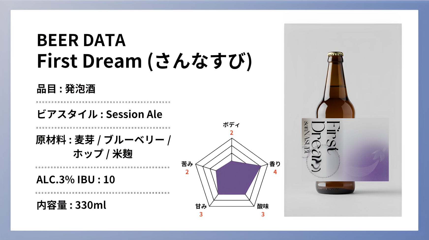 アルコール度数3%と軽くブルーベリーの酸味や爽やかさを感じられる、クラフトビール初心者にも優しいビールです。