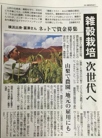 【クラウドファンディング 雑穀栽培を次世代へ 横浜出身・冨澤さん、ネットで資金募集】