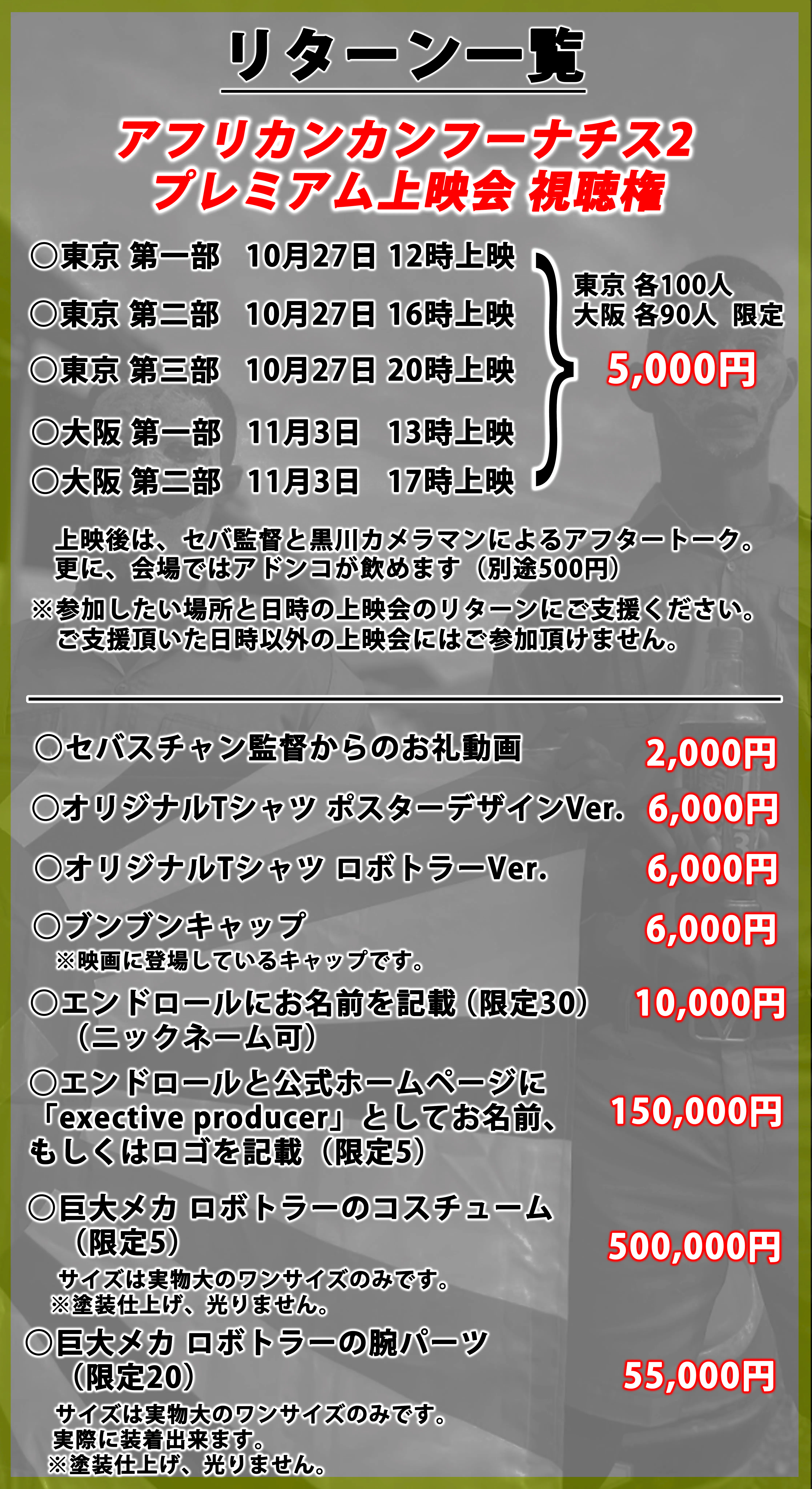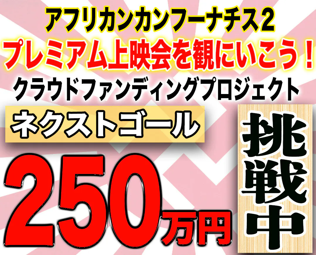 というわけで、まずは、昨年4月1日に敢行したクラファン「アフリカンカンフーナチス2制作プロジェクト」に、多くのご支援を頂きまして