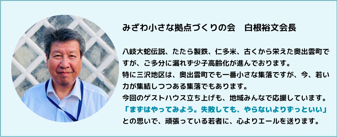 今回は「みざわ小さな拠点づくりの会」会長の白根さんよりいただいた応援メッセージをご紹介させていただきます!