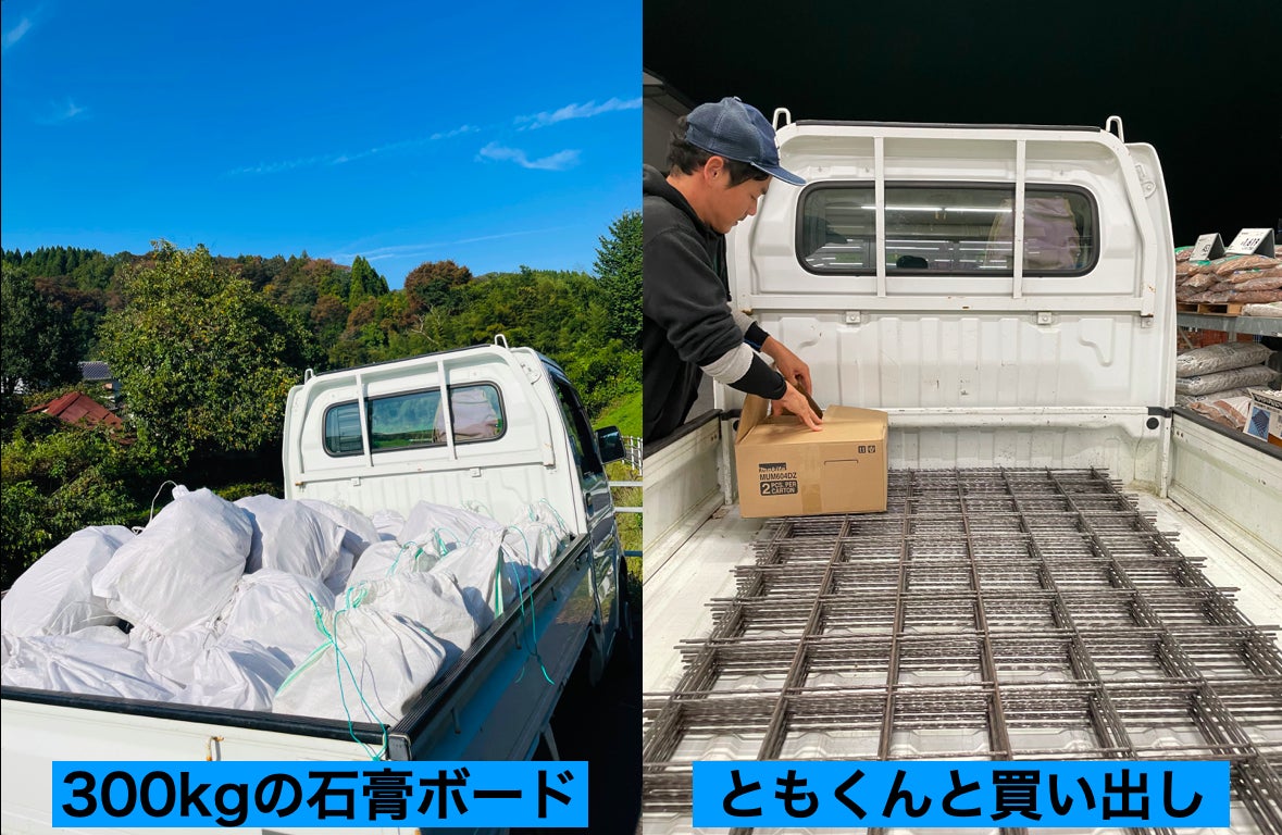 『壊す』作業で出てきた廃材はなかなかの量でした。。木、石膏ボード、タイル、瓦礫など。これらは産業廃棄物として処理するとのこと。少しでも資金を浮かせるためにも、木は3tコンテナを業者さんにお願いし、300kgにもなった石膏ボード等は持ち込みすることにしました。