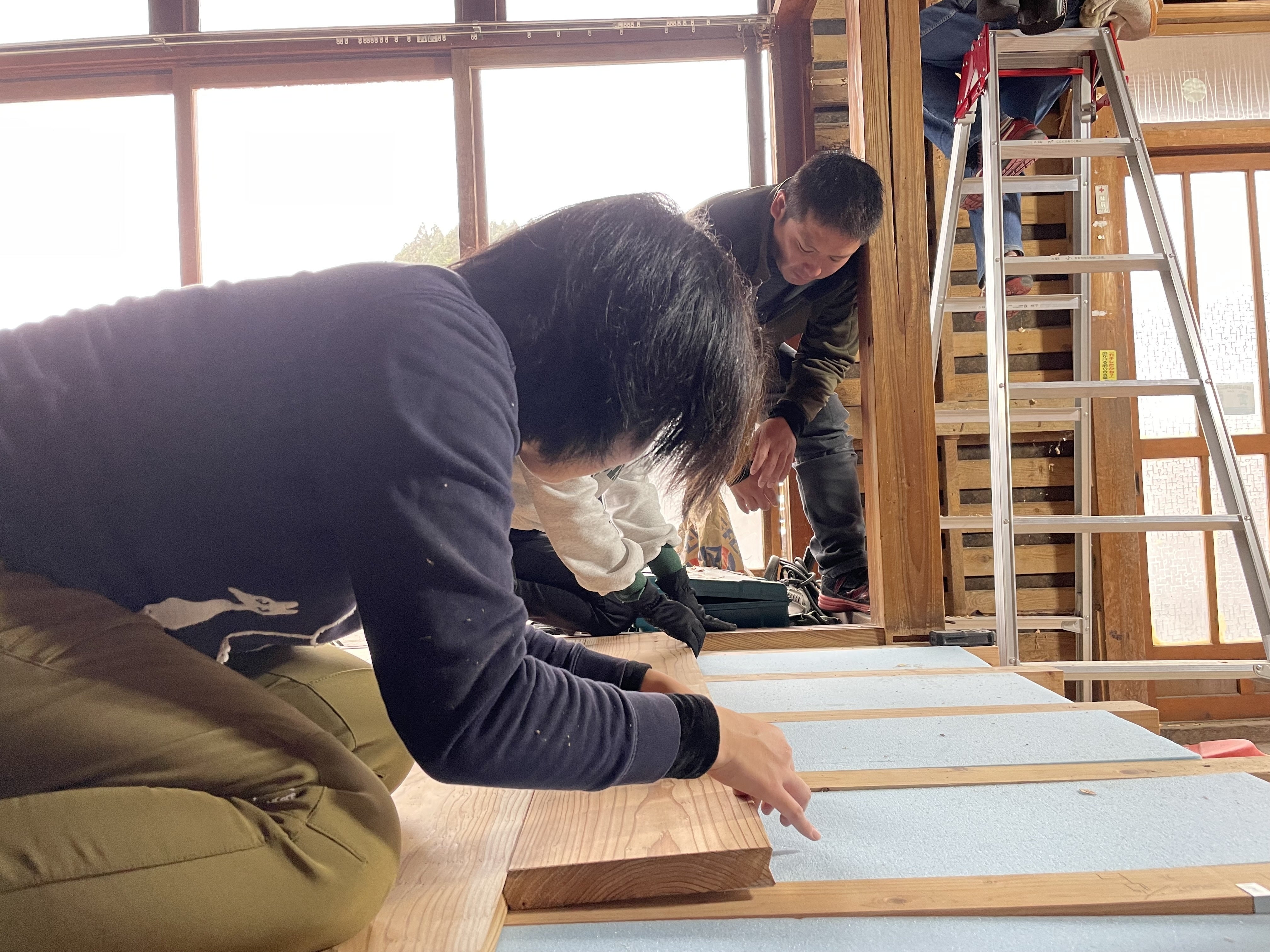 12/9(土)〜2泊3日では、兵庫県の淡路島で地域おこし協力隊をしている子が視察に来てくれたため、いきなりリノベ体験をしてもらいました。着任して3ヶ月の彼にとって少しでも刺激や学びが作れたら嬉しいです。