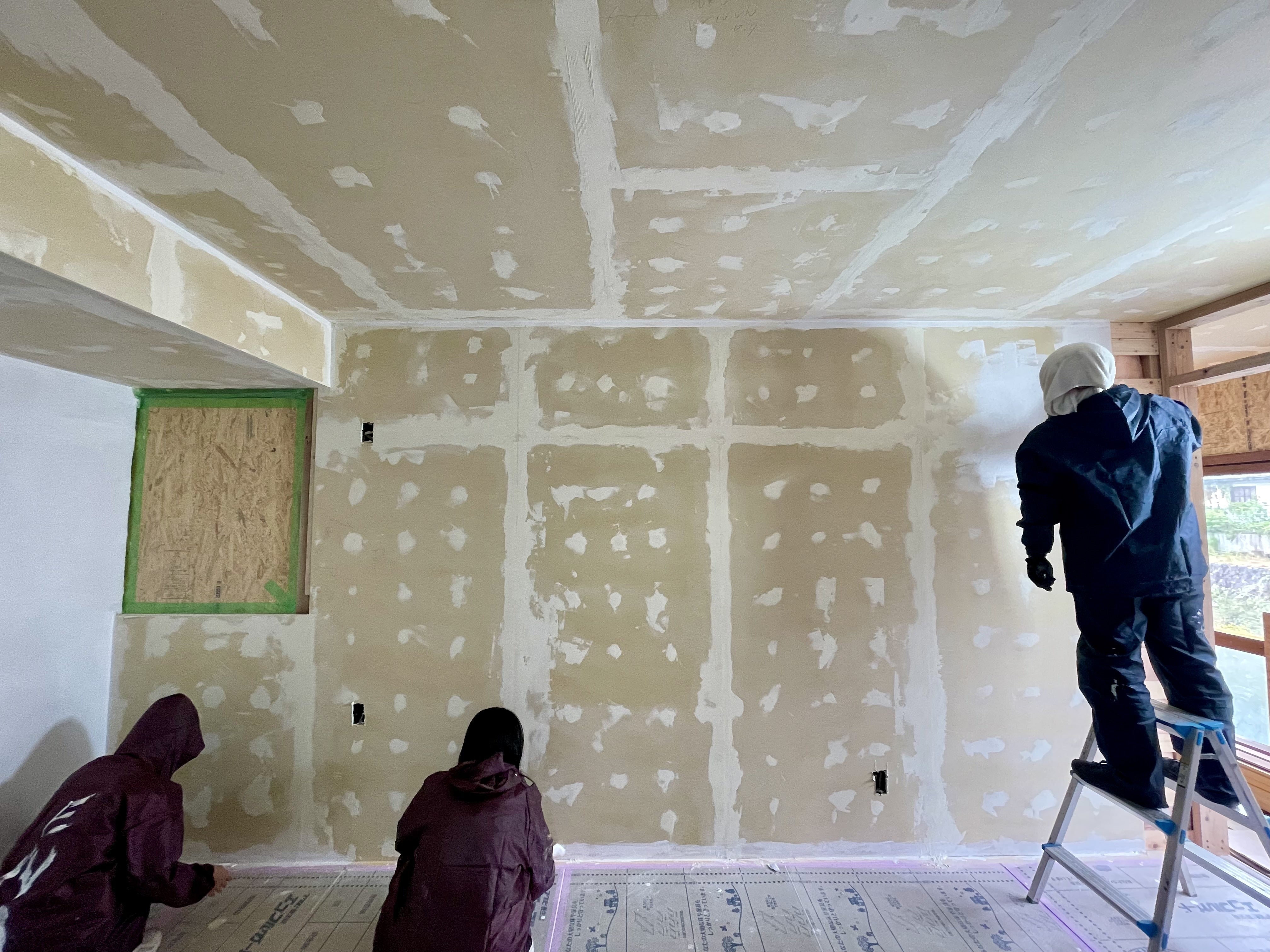 漆喰やペンキ塗装に向けて、シーラーを塗りはじめました!