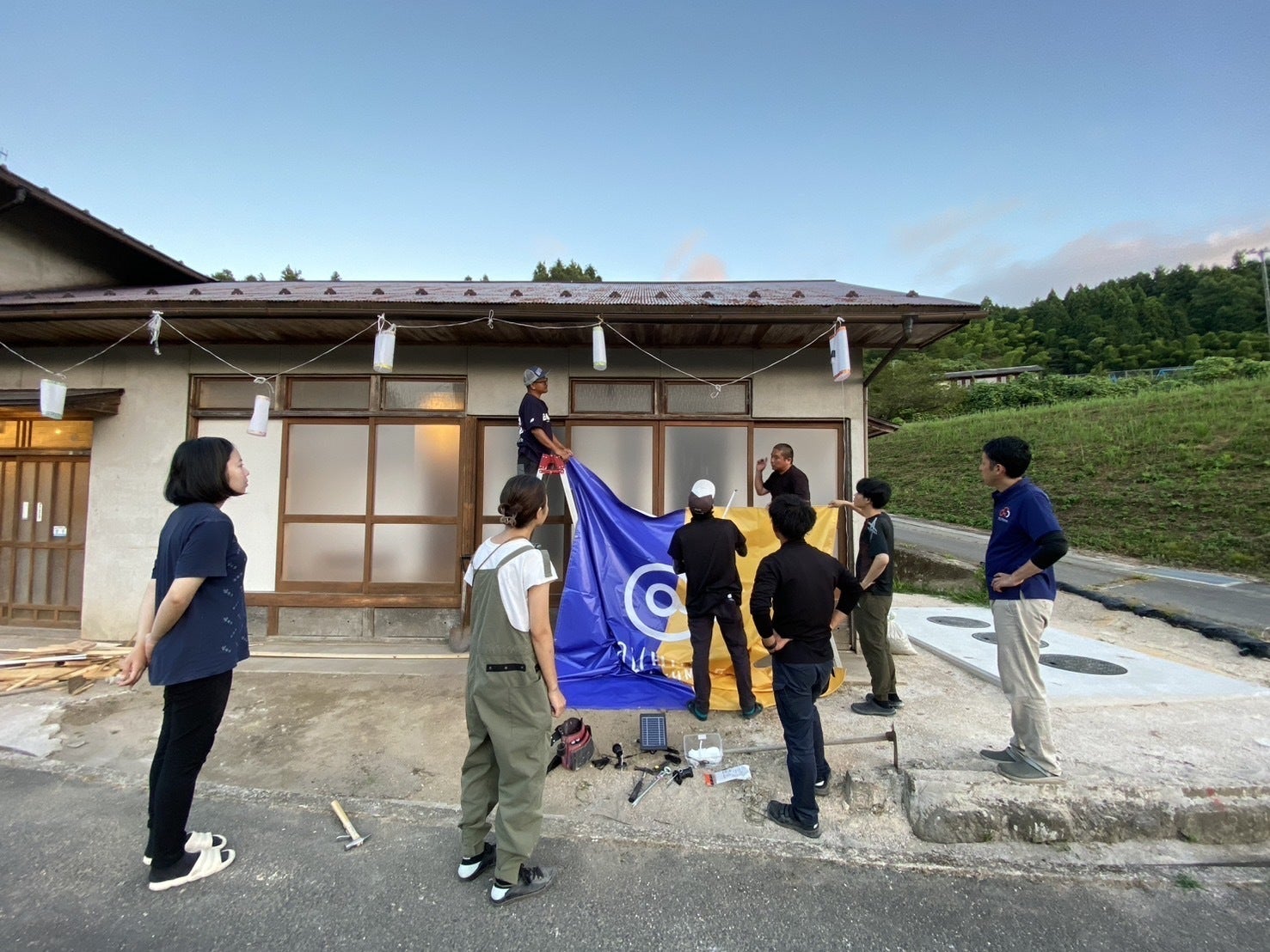 クラウドファンディングでのスポンサー様の焼印を行なったり、土間のテーブルや椅子の組み立て、案内看板や当日配るチラシづくりなど、各々の得意を活かして作業を行いました!また、お祭り前日の金曜日には、お兄さん達も駆けつけてくださり、みんなで横断幕を飾りました!